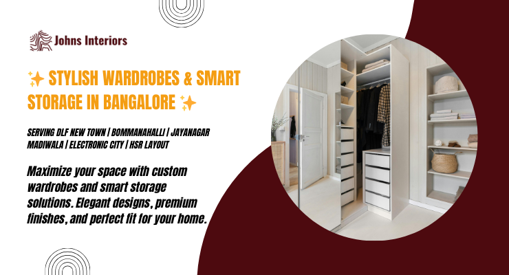 Get premium wardrobes and smart storage solutions in Bangalore. Serving DLF New Town, Bommanahalli, Jayanagar, Madiwala, Electronic City & HSR Layout. Customized designs, space-saving options & professional installation. Book your free consultation now!