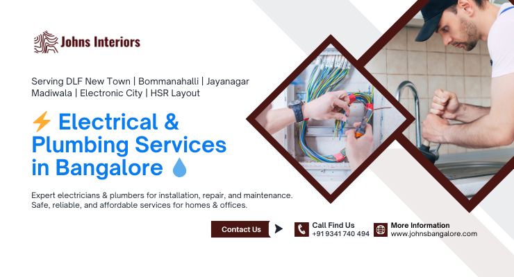 Expert electrical & plumbing services in Bangalore for homes & offices. Serving DLF New Town, Bommanahalli, Jayanagar, Madiwala, Electronic City & HSR Layout. Installation, repairs & maintenance. Book your service today!