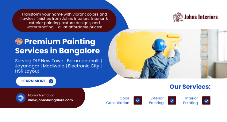 Professional painting services in Bangalore for homes & offices. Serving DLF New Town, Bommanahalli, Jayanagar, Madiwala, Electronic City & HSR Layout. Interior & exterior painting, texture finishes & more. Book your free quote today!